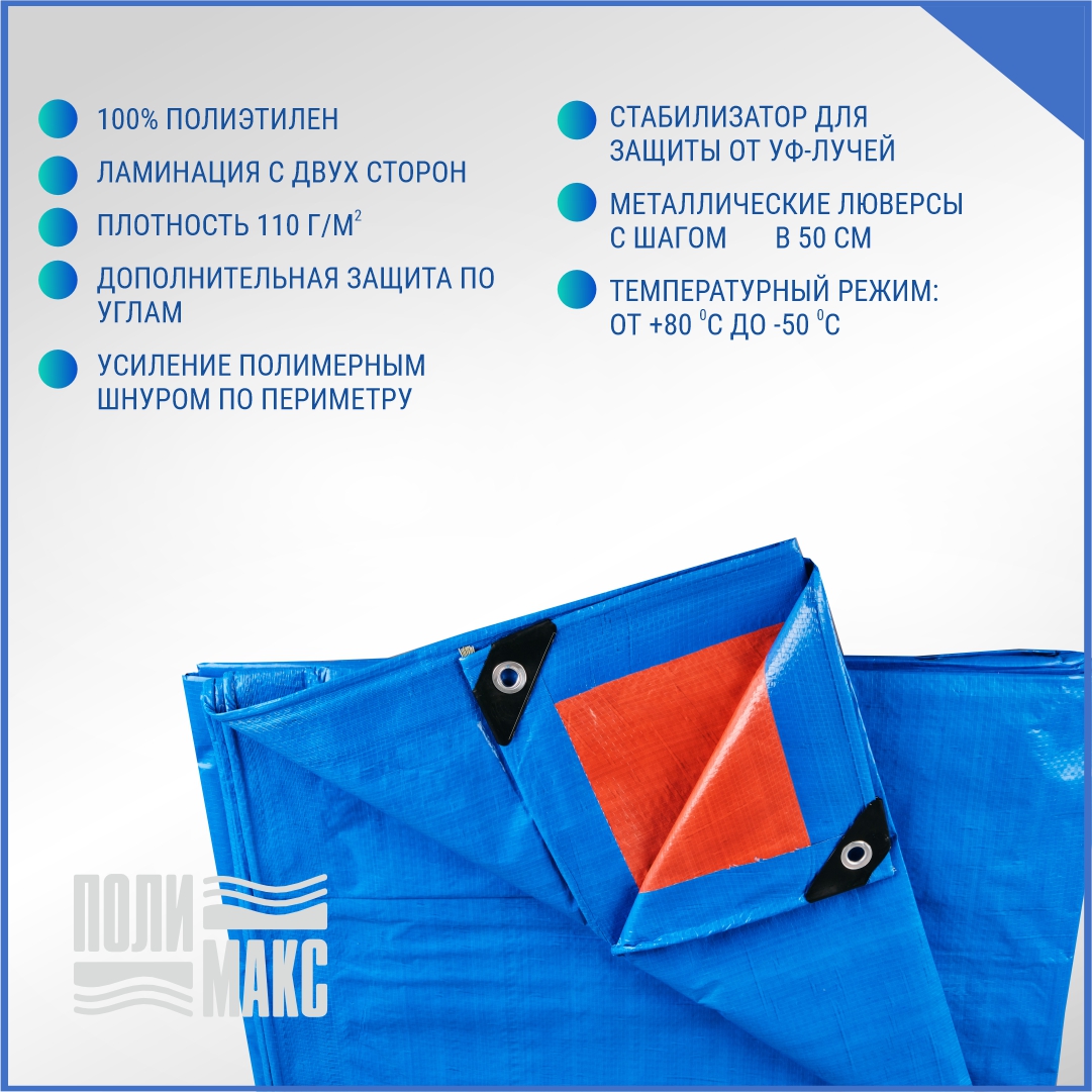 —Полог/тент полиэтиленовый 110 г/м2, 10 х 12 м, синий/оранжевый